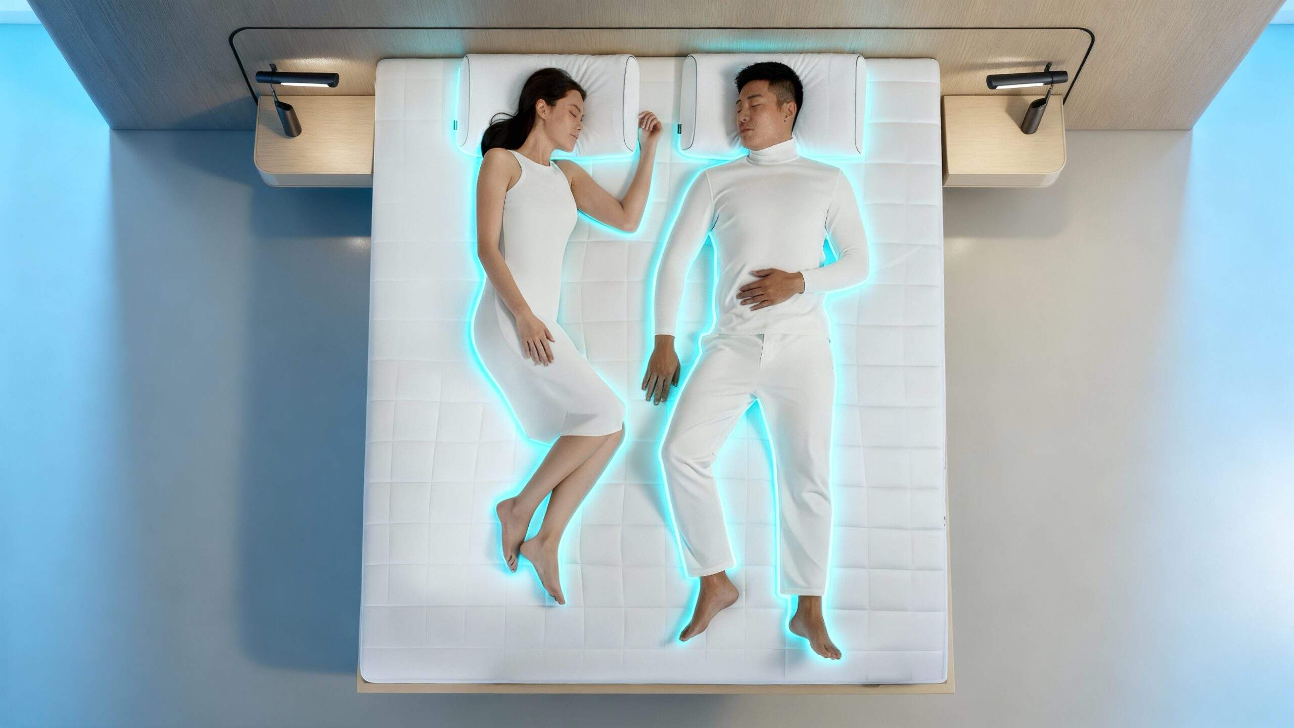 左右獨立的雙區智能調節系統,AI 能即時適應不同體型與體重,互不干擾,雙方都能享受客製化的睡眠體驗。
